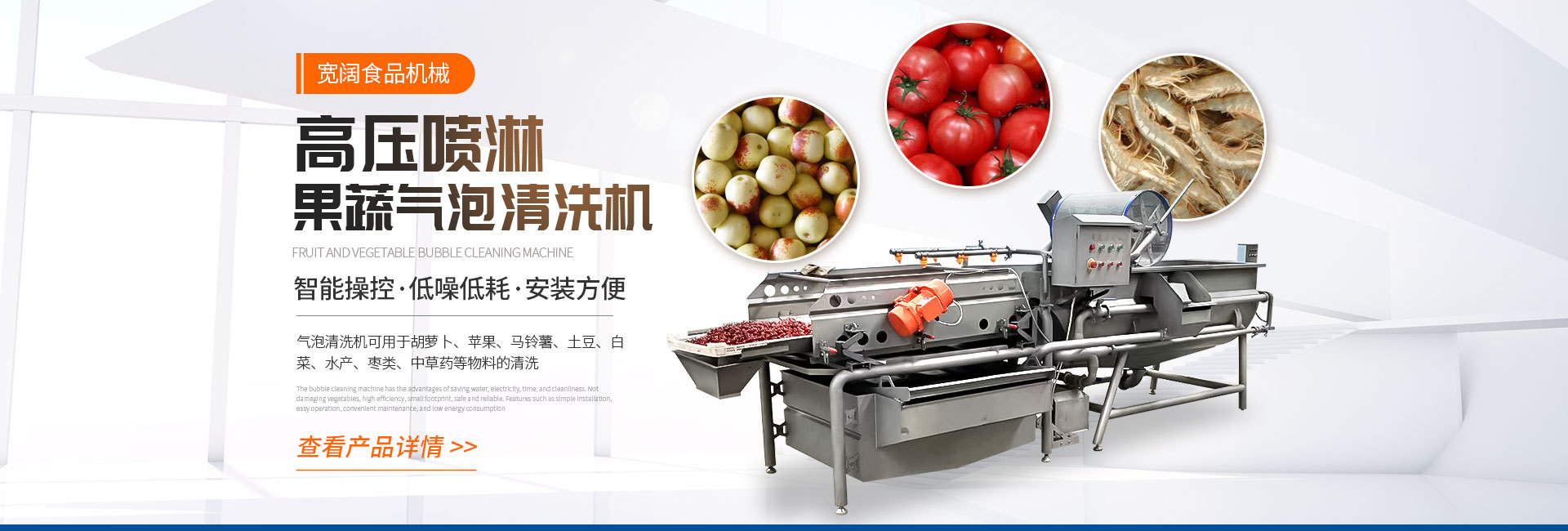 氣泡清洗機的操作步驟操作步驟:(1)將水箱內清洗干凈,加滿水;主槽體內注入清水至溢水口有水溢出。(2)啟動輸送網帶電機,使網帶正常運行,方向正確;(3)啟動旋渦泵,將空氣注入水箱水中,使箱內的水翻騰;(4)開啟噴淋管閥門···